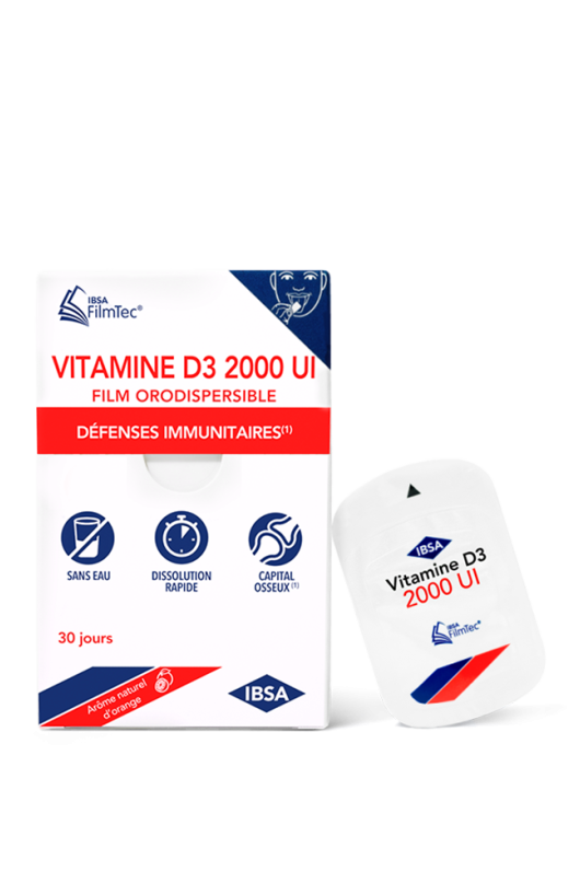 Le complément alimentaire Vitamine D3 FilmTec® proposé par IBSA Pharma se présente sous la forme innovante d’un film orodispersible ultra-fin. Un simple geste pour faire le plein de vitamine D.